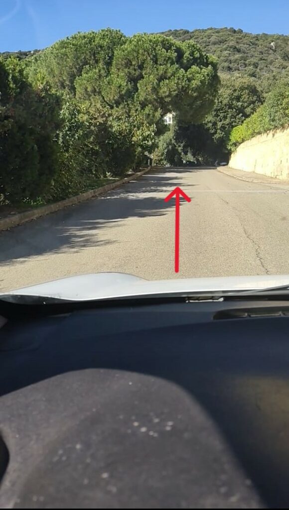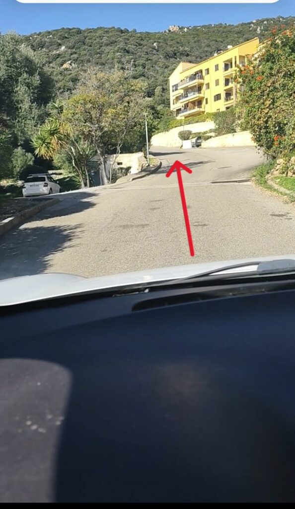 A l’entrée de la résidence, emprunter la route principale jusqu’en haut