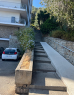 Monter les grands escaliers extérieur jusqu’au 1er niveau pour accéder au hall de l’immeuble
