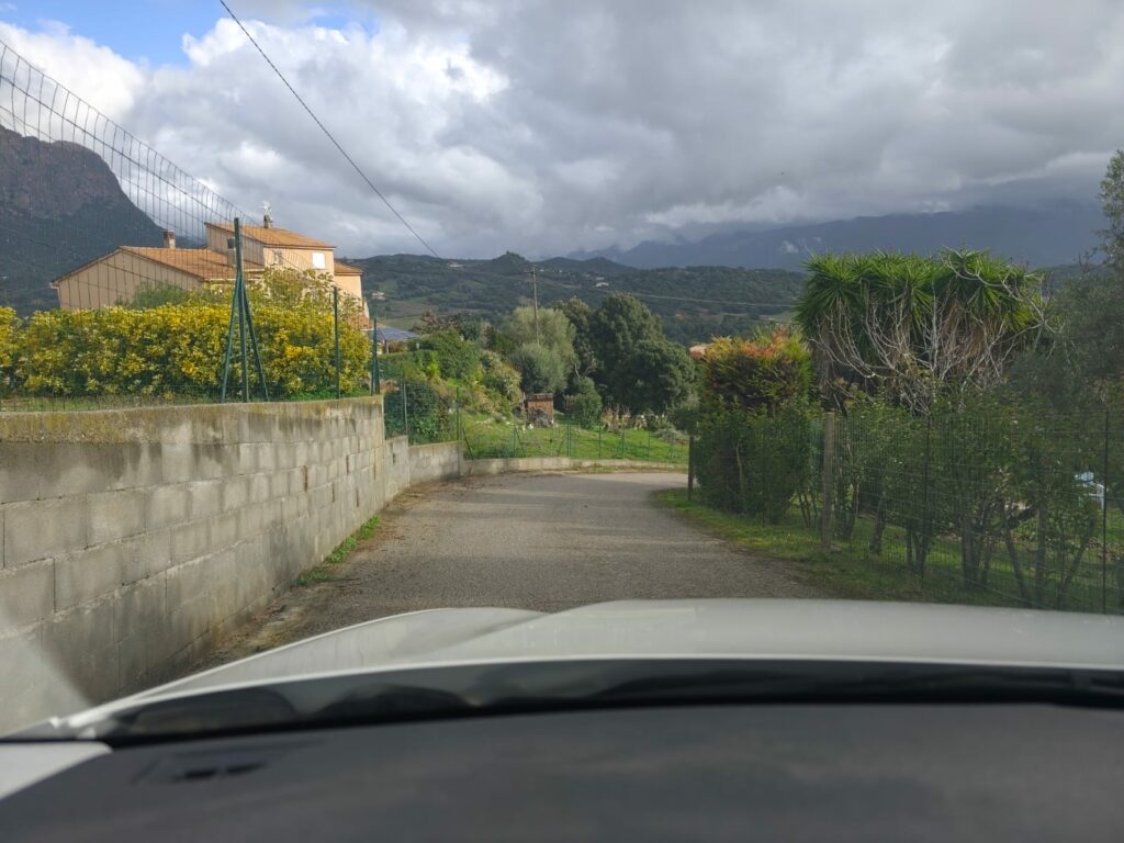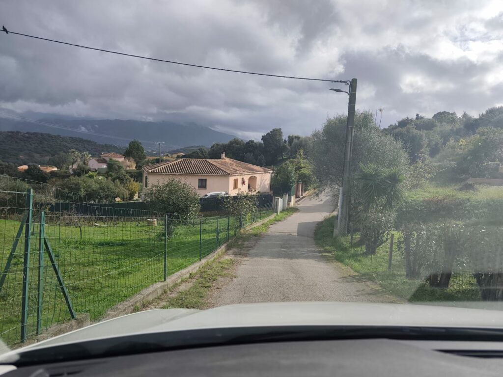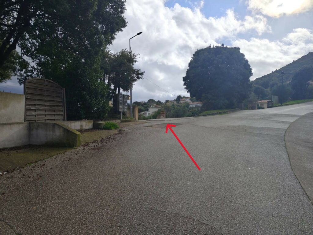 Arriver à l’embranchement , dépasser les boites aux lettres et descendez la route principale jusqu’au fond de l’impasse