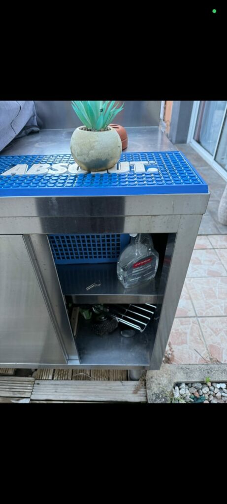 La clé de la porte entrée se trouve dans le bar en métal sur la terrasse